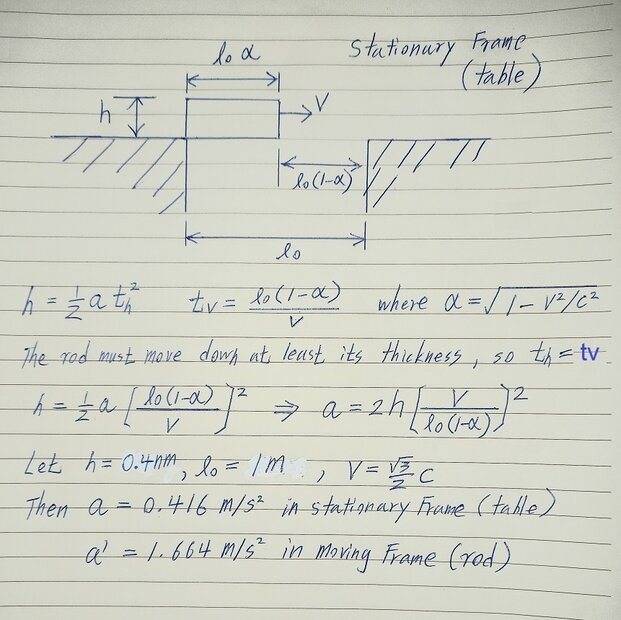 some of the main components mentioned in this imaginative experiment, including the table that carries the sliding rod and the trap door of the hole, are almost impossible to exist.
