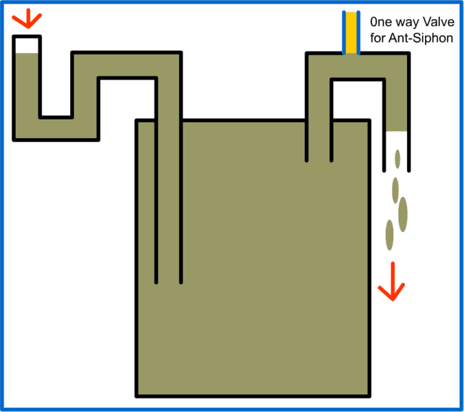 into the lower level holding tank, #2. The concern is preventing a siphon situation where after the liquid displaces through the connecting pipe, it continues to draw liquid.