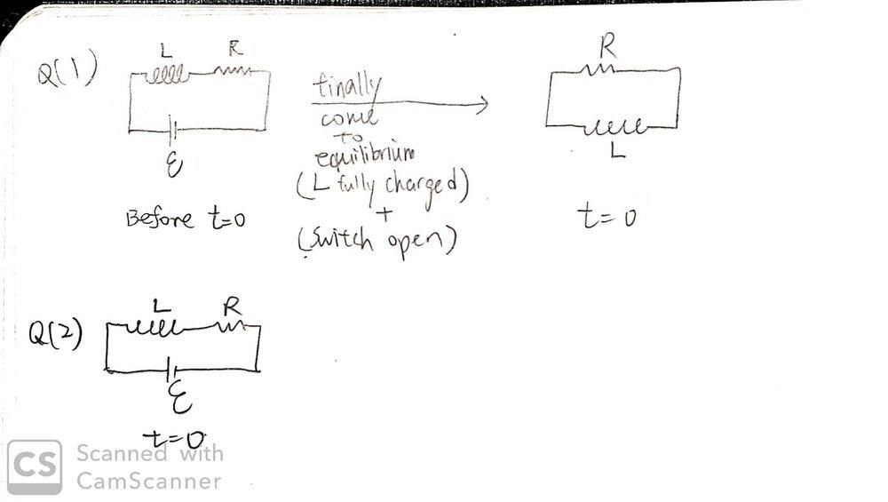 - (1) An inductance L, resistance R, and ideal battery of emf ε are wired in series and the circuit is allowed to come to equilibrium. A switch in the circuit is opened at time t = 0, at which time the current is ε/R. At any later time t the potential difference across the resistor is given by:
