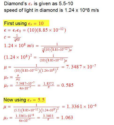 So, how do we really calculate the speed of light in a material using its permittivity and permeability values, or where am I going wrong with my calculation?