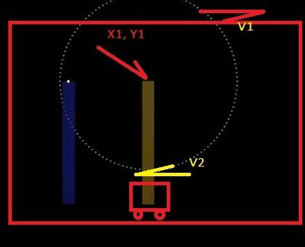 Car 1 can move along the train tracks in the direction v1 at a constant velocity v1