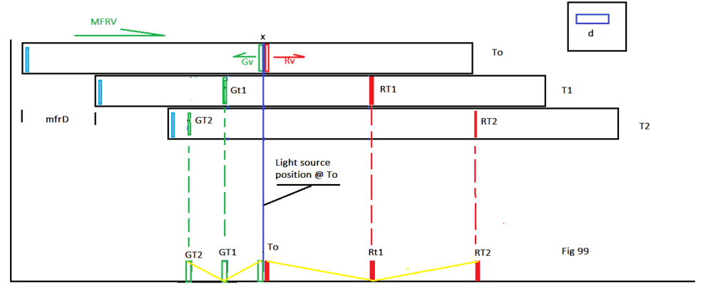if the MFR is traveling in direction V at velocity V. When the velocity of Car 1 ( velocity V1) is equal to the velocity of the MFR (V) and when the direction of car 1 (direction of V1) is exactly opposite direction of the MFR (direction of V), the time to traverse the length of the light tube, in Car 1, will be the shortest.