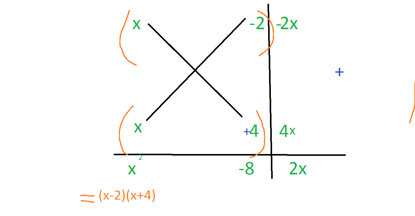 (x-2)(x+4) <-- USING THE CROSS METHOD View attachment 3985