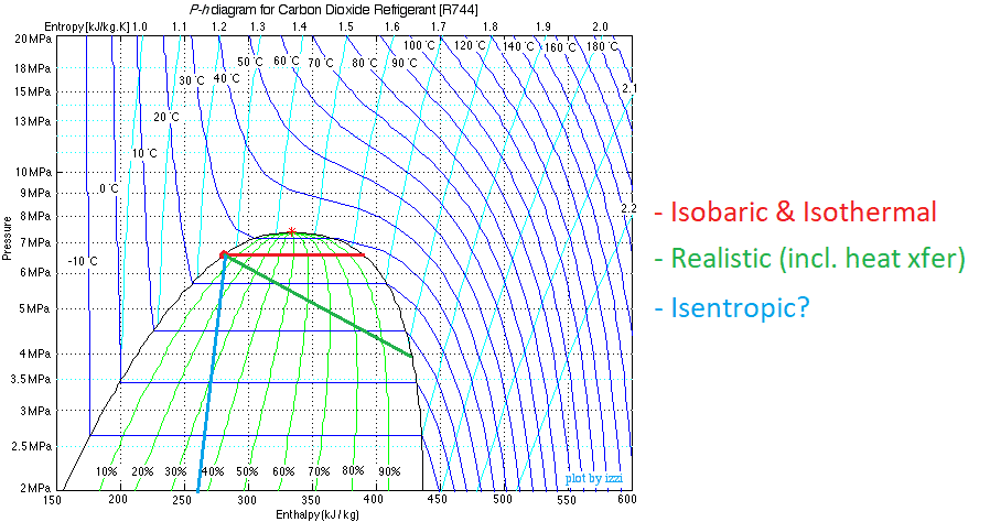 - When I remove some small amount of mass from the system, then the total enthalpy of the system must drop (in effect I am removing energy in the form of matter). Some liquid will evaporate in order to re-establish equilibrium (and oddly enough, the quality increases). The temperature will drop due to this evaporation, and the overall pressure will be slightly lower. I now have a two-phase liquid/vapor mixture of CO2 that is at some slightly lower temperature/pressure and of some reduced total mass.