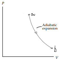 - A recipient with a plunger/piston is filled with Helium. The gas has initial temperature T1, pressure P and occupies a volume V1. Suddenly, the pressure changes to P/5 and the Helium expands irreversibly while heating up to T2. Find the internal energy change, the work realized during the expansion and the heat exchanged during the process.