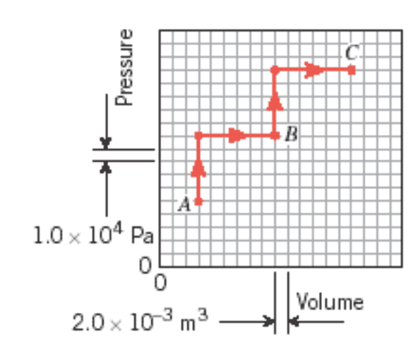 - Participants are attempting to calculate the work done by estimating areas under the graph and questioning whether to include the entire area from A to C. There are discussions about the pressures at points A, B, and C, and how these values affect the calculations.