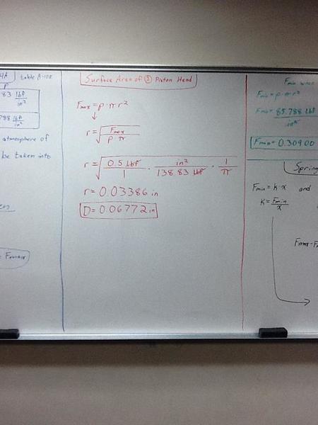 I am assuming that at 100 degrees F that the system is in equilibrium and the force to keep the windows closed is 0.5 lbf. The picture also shows the piston is closed off, so I am assuming that I don't need to worry about atmospheric pressure. I can't see where I am going wrong, but the piston diameter seems to small. Is this right or am I reading the original problem wrong.