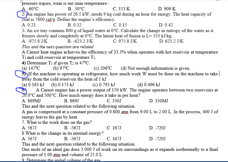 Q9 and 10: I think I got this one but I'm not sure about the units of measurements like whether it should be Pa or atm, L or m3 or cm3