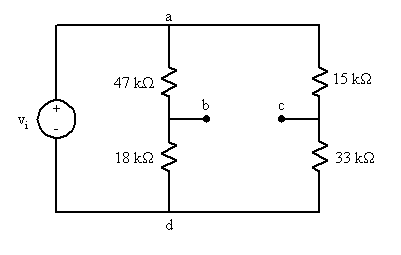 - There is a suggestion that the potential from terminal b to terminal c may be negative, based on the observed voltage dividers.