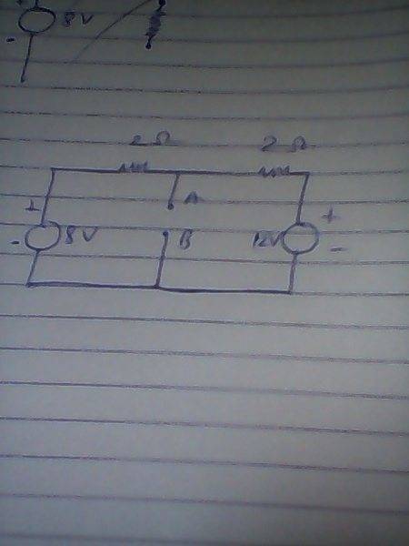 m giving a circuit in whi there we have to find current through 4 ohm resistancce connected acreoss terminals A& B.., on left side of A, B there is a battery of 8V and a resitance of 2 ohm in series with at & on right side of A,B there is a battery of 12 V and resitance 2 ohm in series with it..
