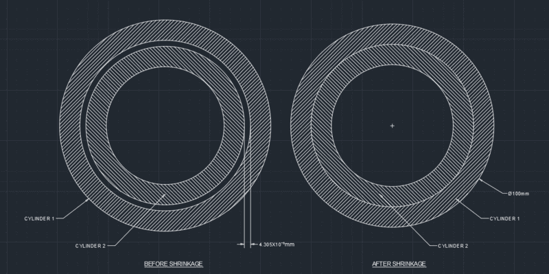 - Participants explore the relationship between the changes in diameters of the two cylinders and the interference before shrinkage. There are attempts to clarify the roles of tension and compression in the context of the problem. Questions arise regarding the setup of the cylinders and the assumptions made about their interactions.
