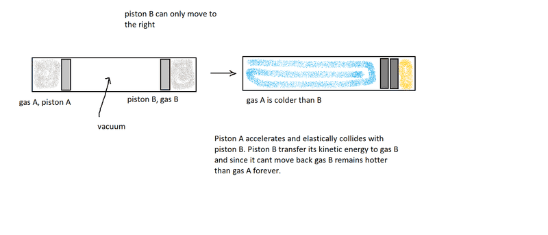 Let's assume that the second piston (gas B) is held to prevent it from doing the same thing as piston A.