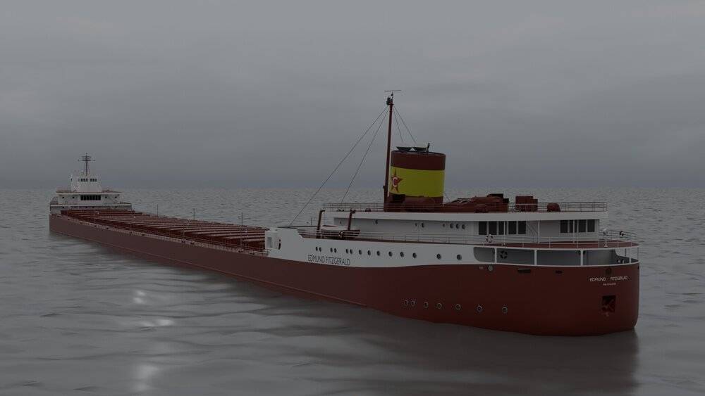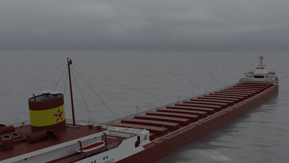 These are images of a 3D model I made of the legendary Edmund Fitzgerald, a great lakes bulk carrier ship, which famously sank in lake superior in 1975.