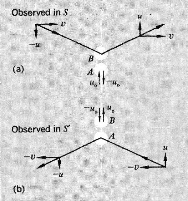 My question is simply this: why do we assume without a doubt that the balls bounce back with the same speed that they were thrown? If B's ball bounces back with speed [itex](v,u_y)[/itex] and A's ball bounces back with velocity [itex](0,-u_y/\gamma)[/itex] then Newtonian momentum is conserved.