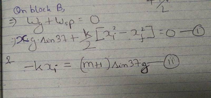 - Participants discuss the tension in the spring when one block loses contact and the total energy in the system. There are attempts to apply the Work Energy Theorem and questions about the relationships between different variables involved in the equations formed by the original poster.