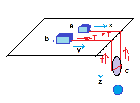 - Q) Two particles of masses m and 2m are placed on a smooth horizontal table. A string,