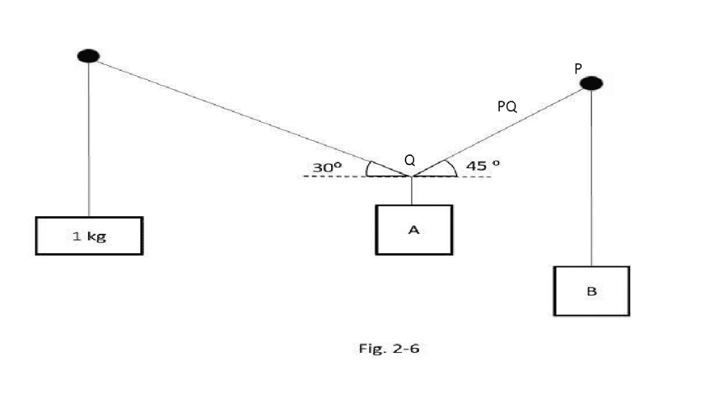 Let Q be the point where the strings join above A, and P be the point where the string going up and left from there contacts the pulley.