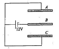 I think that the middle plate being isolated should have +Q on one side and -Q on other, but how would be the charge distribution about the remaining plates as both of them are connected to the positive terminal of the battery.