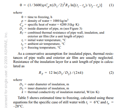 Hi - I'm using the ASHRAE guide equation to determine the time to freeze an insulated pipe and im comparing the values they used to their published table as a guide and I seem to be off by the same value as the Rt value, and I dont think they have neglected the thermal resistance of the insulated material. Anyone know why this may be? Its the formula on page 639 of the AHSRAE 2009 fundamentals guide