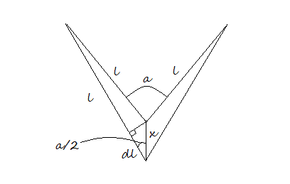 $$k \cdot l \cdot cos {\frac a 2} = mg$$