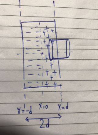 The discussion revolves around calculating the time period of small oscillations of a point dipole placed in an infinite flat layer with a specified volume charge density. The charge density varies with the position along the axis perpendicular to the plane, and participants are exploring the implications of this setup on the electric field and oscillation characteristics.