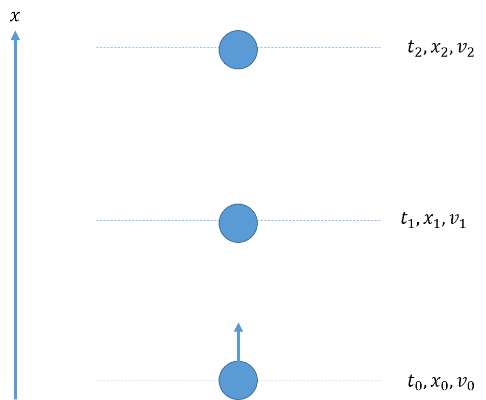 I try to justify time-reversal symmetry in a very simple classical problem; Free Fall. The position, ##x##, and the velocity, ##v## are obtained versus time from the equation ##-g=\ddot x##. So, if we consider the primary conditions as ##t_0,x_0,v_0## it is clear that, ##x(t)=\frac{1}{2}(-g)(t-t_0)^2+v_0(t-t_0)+x_0## and ##v(t)=-g(t-t_0)+v_0## give the position and velocity at any time. Plesase see the attached figure. AT the point (1) we have$$x(t_1)=x_1=\frac{1}{2}(-g)(t_1-t_0)^2+v_0(t_1-t_0)+x_0$$ and $$v(t_1)=v_1=-g(t_1-t_0)+v_0.$$ We expect by applying time reversal to obtain ##x(-t_1)=x(t_1)## and ##v(-t_1)=-v(t_1)##. However, inserting ##-t_1## instead of ##t_1## doesn't neccesarily fulfill this requirement: