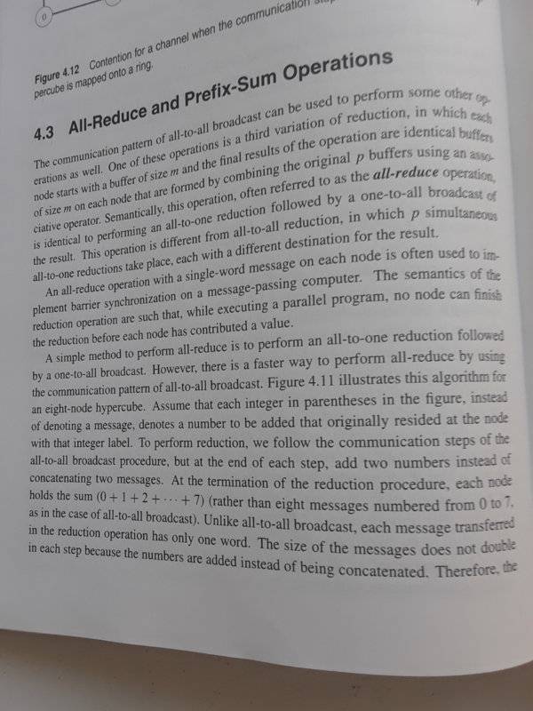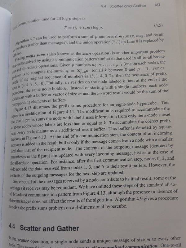 ##T = (t_s + t_w*m) * log_2 p## p=167 (see attached image p167... i.e equation (4.5)), equation to analyze(answer)