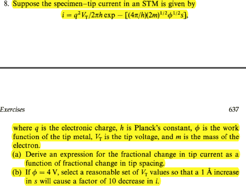 a) Derive an expression for the fractional change in tip current as function of fractional change in tip spacing s.