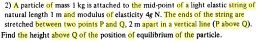 Here's my diagram of the system in equilibrium. So the mass has dropped a distance x below the midpoint of PQ: