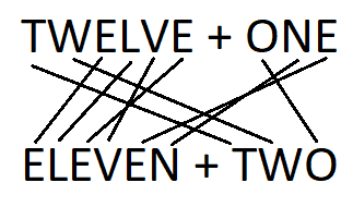 TWELVE + ONE = ELEVEN + TWO