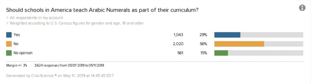 TIL the majority of Americans don't think Arabic numerals should be taught in schools.