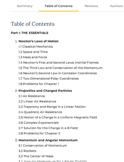 - Some participants note that the book covers standard topics in Newtonian mechanics, including Newton's laws, coupled oscillations, and normal modes, along with additional chapters on non-linear mechanics, Hamiltonian mechanics, collision theory, special relativity, and continuum mechanics.