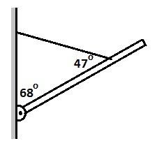 -One of the vertices in the triangle is 65 degrees since it is also a vertex in the triangle created by the lever rod, the cable, and the wall. Therefore since a triangle has 180 degrees, we subtract 68 and 47 and then get 65 as the angle for that vertex