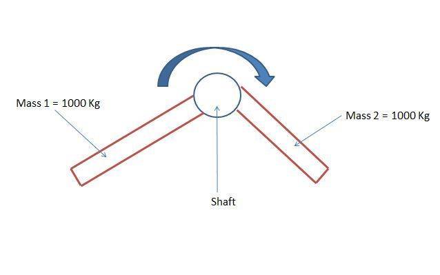 The discussion focuses on calculating the torque required to rotate a shaft with two equal masses of 1000 Kg each positioned at 120-degree angles. The lengths of the bars are confirmed to be 500mm each. Participants clarify that torque is calculated using the formula Torque = Force x Length, and emphasize the importance of considering the resultant mass rather than simply summing the two masses. The conversation also highlights the need to express torque as a function of angular position for accurate calculations.