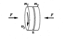 A uniform cylindrical wheel of mass ##m_{1}## and radius ##R_{1}## rotates with angular velocity ##\omega_{1}##. It lies a certain distance (along the same axis) from a static wheel of radius ##R_{2}## and mass ##m_{2}##. The wheels are then pushed against each other with a constant force ##F## uniformly distributed across the wheel's face. There is friction ##\mu## between the wheels.