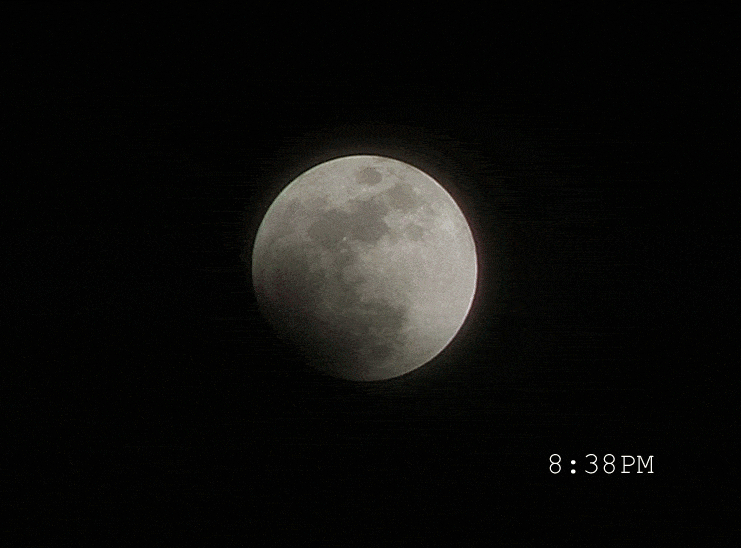 - Participants share their experiences of watching the eclipse in real-time, including descriptions of the moon's appearance and attempts to capture images.
