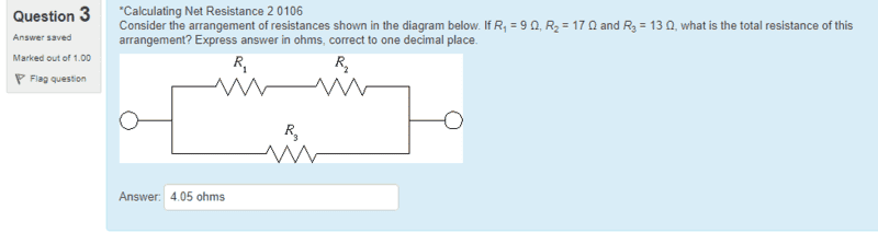 There is a discrepancy in the values provided for R3, with the original poster stating 18 ohms while another participant claims it is 13 ohms. Additionally, the original poster's answer was noted to be incorrect, and there is a requirement to express the final answer to one decimal place.