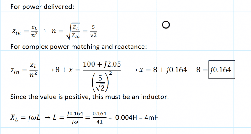 - There are corrections regarding the calculation of the reflected load impedance and the sign of the inductor's impedance, with participants refining their understanding of the concepts involved.
