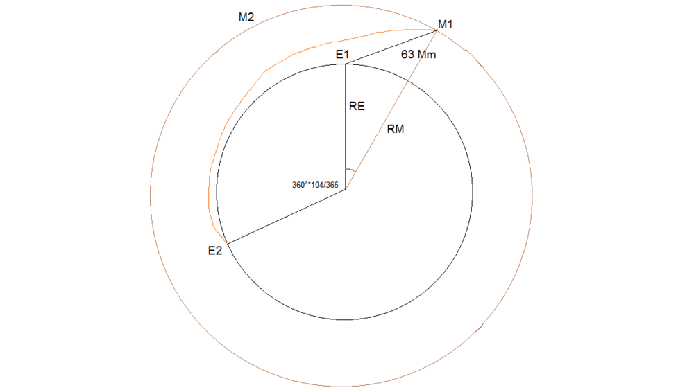 What I'm hoping to end up with is the total distance the object would have had to travel, and how fast, to make the trip in 104 days. so here's my collection of figures (and they may be wrong, PLEASE feel free to correct me if they are!):