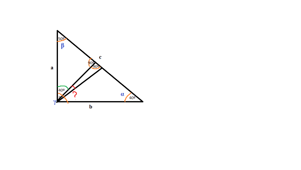 - One participant states that the triangle has angles of 90º, 50º, and 40º and seeks to find the angle between the raised height and the angle bisector.