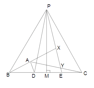 -----Let $ABC$ be a triangle with $AC$ is longer than $AB$. The point $X$ lies on the side $BA$ extended through $A$, and the point $Y$ lies on the side $CA$ in such a way that $BX=CA$ and $CY=BA$. The line $XY$ meets the perpendicular bisector of the side $BC$ at $P$. Show that $\angle BPC+\angle BAC=180^\circ$.