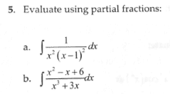 Also, for 5b, I calculated B= -1, C=-1, A=2, and a final answer of 2ln(x) - (1/2)ln(x^2 + 3) - (1/3) tan^-1(x/√3) + C. Any tips for this one?