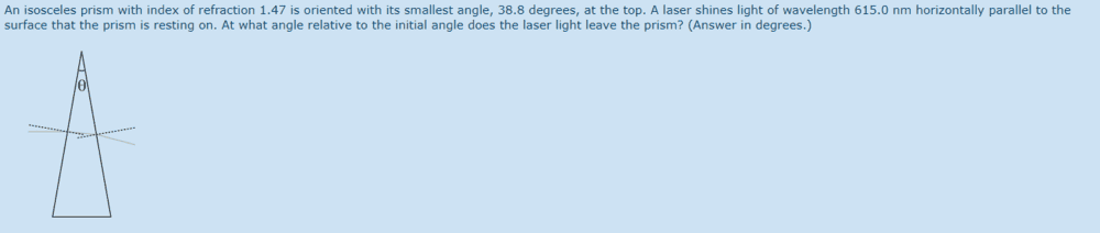 So what I did first was made the face of the triangle flat and calculated the angle the light entered it. This means the light enters the triangle from the base corner angle (so (180-38.8)/2) of 70.6 degrees.