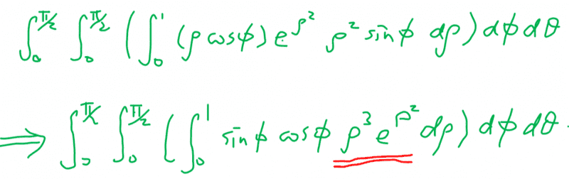 The discussion revolves around a problem involving triple integration over a portion of a sphere, specifically utilizing spherical coordinates and the spherical Jacobian. Participants are comparing results obtained through different coordinate systems, including cylindrical and spherical coordinates.