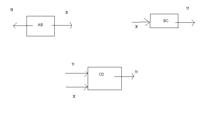 a) I am assuming that the internal forces (3t) are neglected in the FBD because of Newton's third law whereby the force and the opposing force would cancel one another.(?)