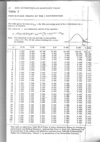 There is mention of the availability of better tables online, indicating that participants are considering the reliability of their sources for t-values.
