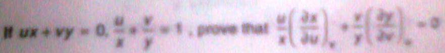 The discussion centers on a partial differentiation problem involving the equations x = (u² - v²) / u and y = (v² - u²) / v. The user attempted to differentiate these equations with respect to variables u and v but did not arrive at the expected result of zero. The lack of clarity in the attachment provided has hindered responses, suggesting that sharing detailed work could facilitate better assistance.