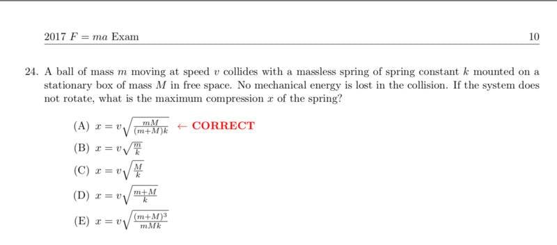 The discussion revolves around a problem involving a spring and masses, specifically focusing on determining the maximum compression of the spring. The context includes concepts from mechanics, particularly the conservation of energy and momentum.