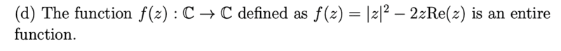 The discussion confirms that the function |z|^2 is not an entire function due to the non-analytic nature of the absolute value function at z=0. Participants clarify that while the sum of two non-analytic functions can sometimes yield an analytic function, |z|^2 fails to meet the criteria for analyticity. The Cauchy-Riemann equations are referenced to demonstrate the conditions under which a function is complex differentiable, and it is established that |z|^2 is only complex differentiable at z=0.