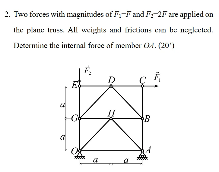 ##-F(2a) + 2F(2a) - O_y(2a) = 0##